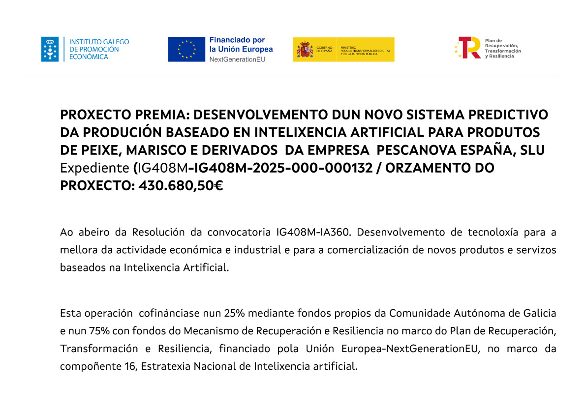 Premia: desenvolvemento dun novo sistema preditivo da produción baseado en Intelixencia Artificial para produtos de peixe, marisco e derivados ofrece unha ferramenta tecnolóxica capaz de anticipar resultados no referido á produción de produtos de paixe, marisco e derivados empregando métodos avanzados de instelixencia artificial (IA).